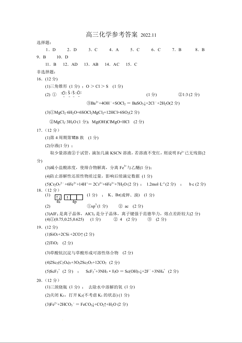 高三化学答案--山东省青岛区域2023届高三上学期期中考试