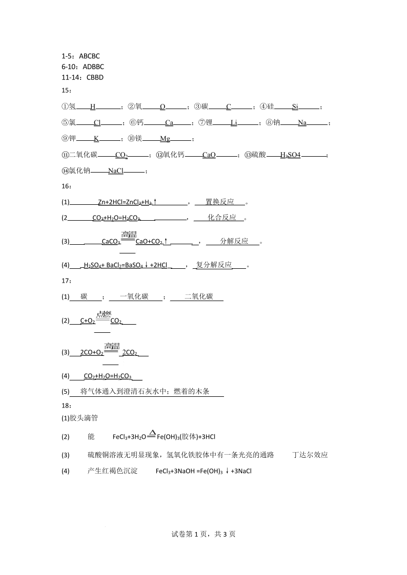 高一化学答案--江西省上饶市余干县私立蓝天中学2025-2026学年高一上学期第一次月考