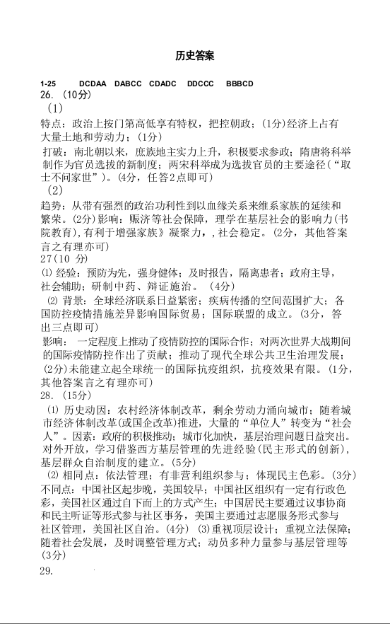 高三历史答案-浙江省杭州二中、温州中学、金华一中、绍兴一中四校2022-2023学年高三上学期联考
