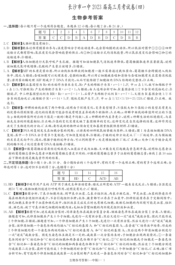 高三生物答案-湖南省长沙市第一中学2022-2023学年高三上学期月考(四)