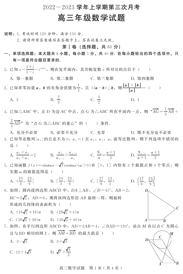 高三数学--河北省邢台市2022-2023学年高三上学期12月月考