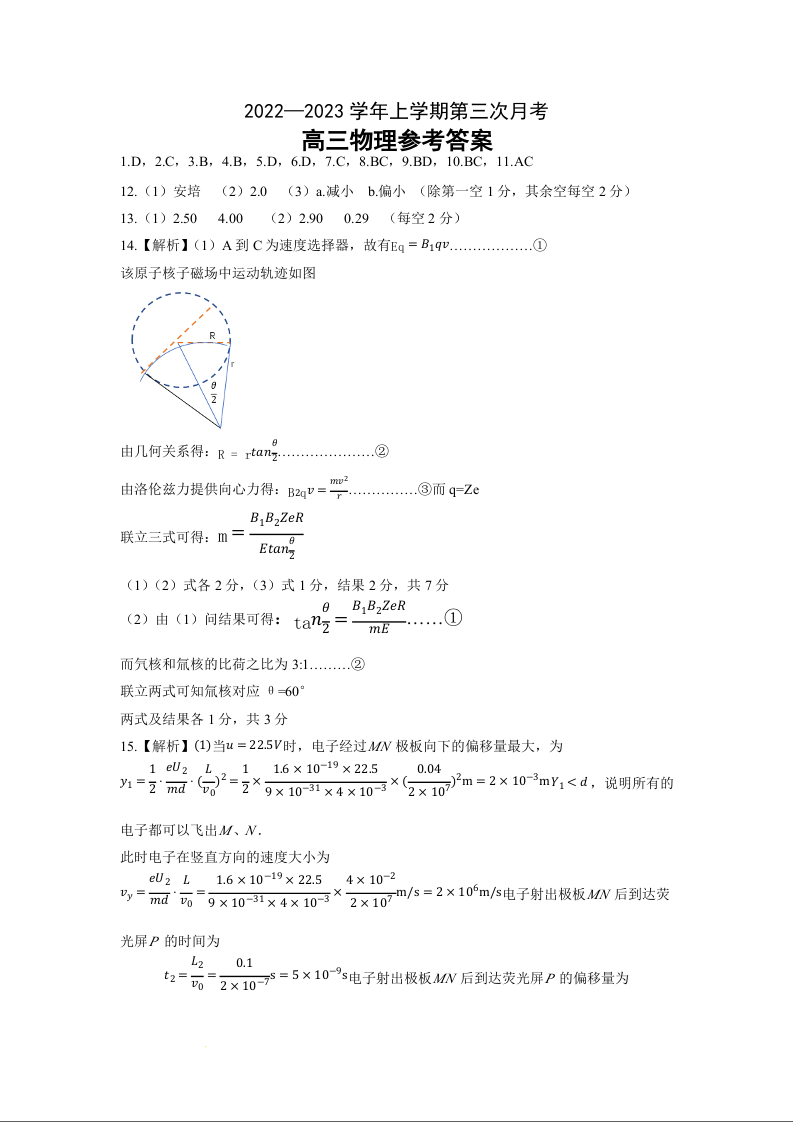 高三物理答案--河北省邢台市2022-2023学年高三上学期12月月考