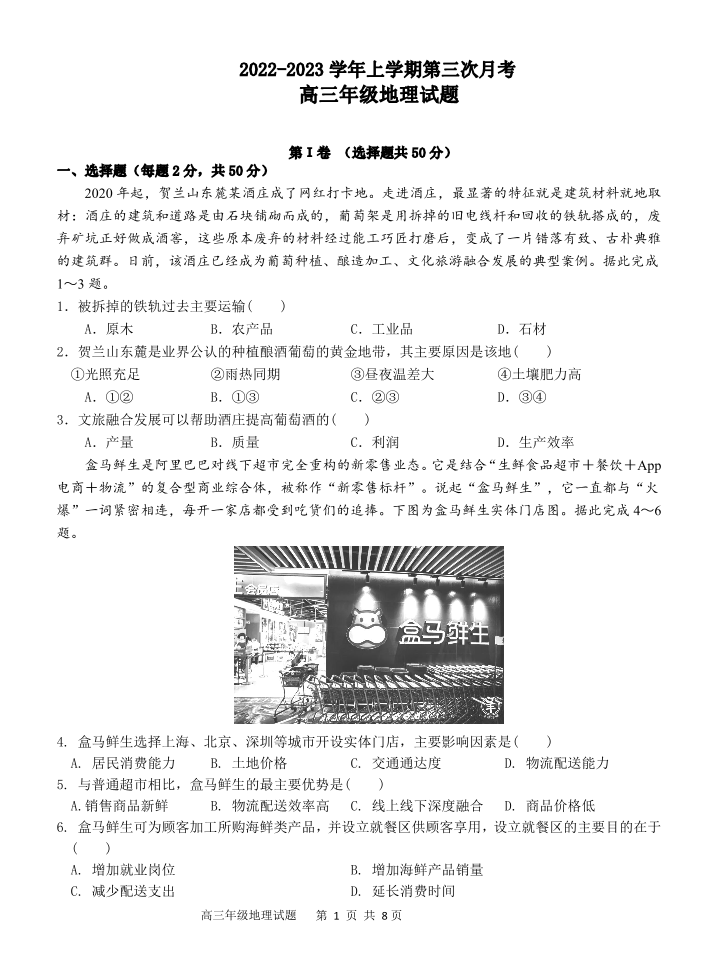 高三地理--河北省邢台市2022-2023学年高三上学期12月月考