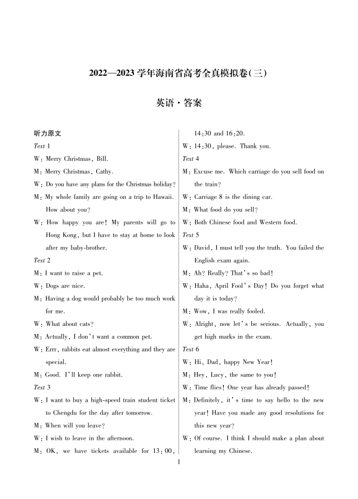 高三英语答案-海南省高三上2023届学期高考全真模拟(三)