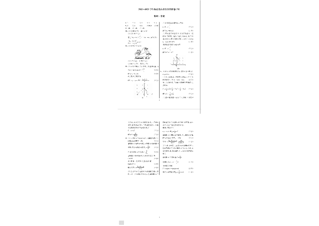 高三物理答案-海南省2022-2023学年高考全真模拟四