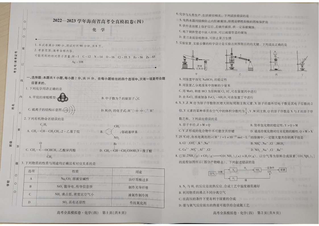 高三化学-海南省2022-2023学年高考全真模拟四
