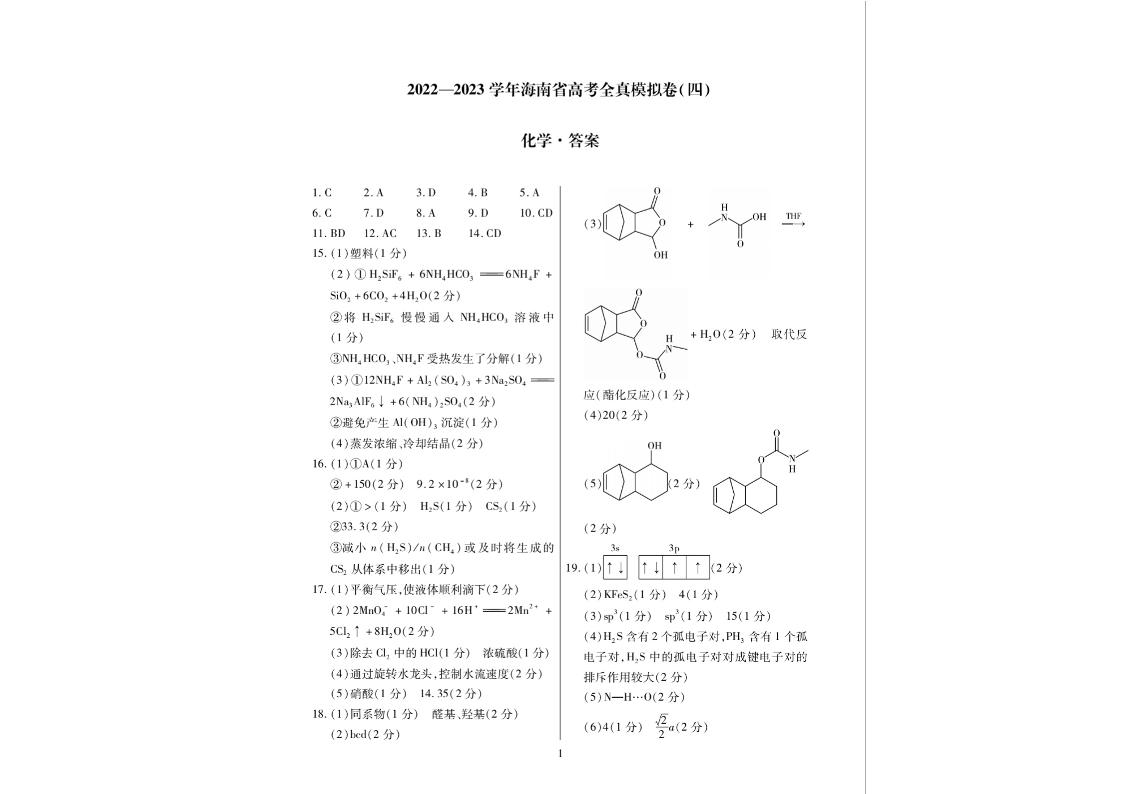 高三化学答案-海南省2022-2023学年高考全真模拟四