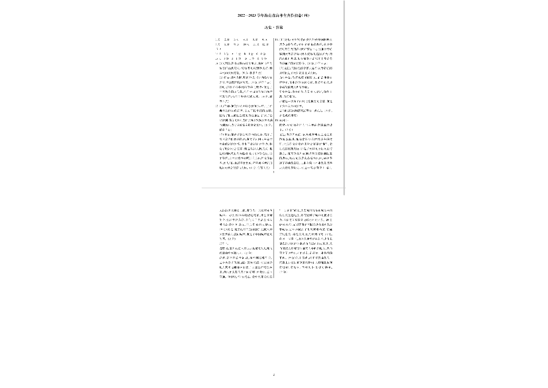 高三历史答案-海南省2022-2023学年高考全真模拟四