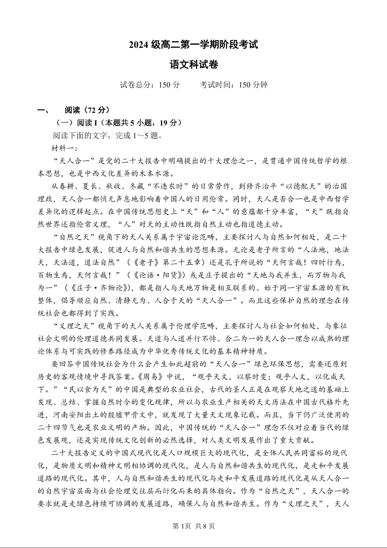 高二语文--广东省汕头市金山中学2025-2026学年高二上学期10月阶段考试