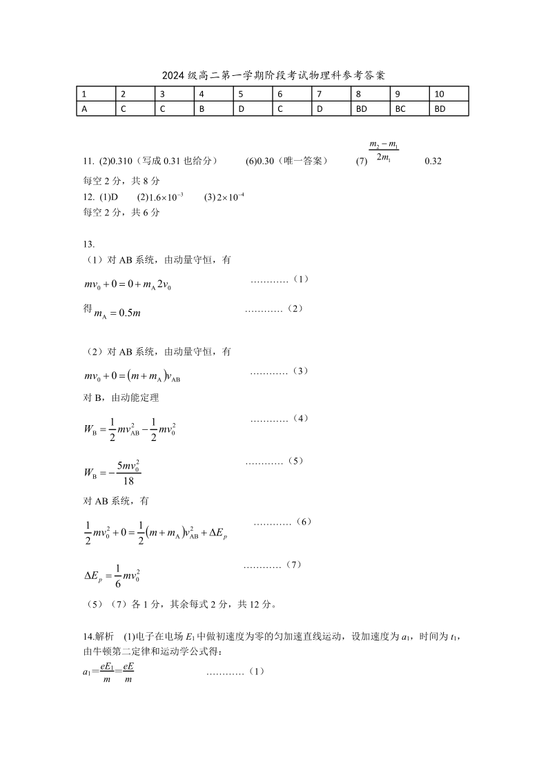 高二物理答案--广东省汕头市金山中学2025-2026学年高二上学期10月阶段考试
