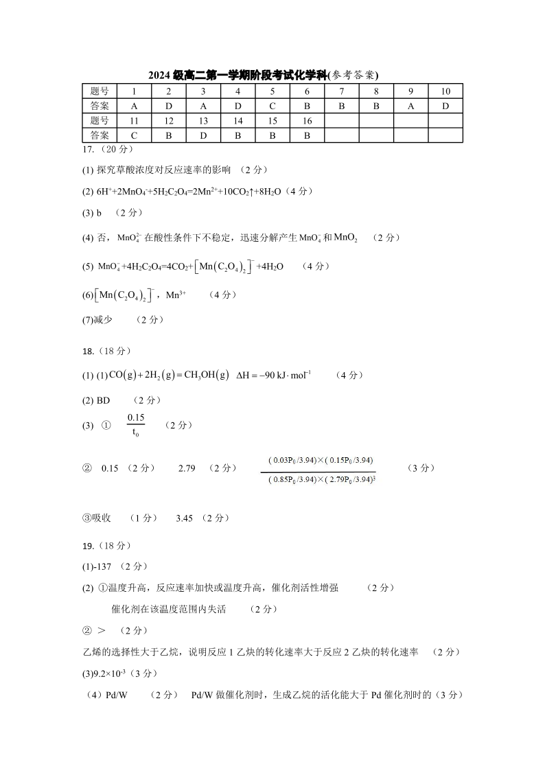 高二化学答案--广东省汕头市金山中学2025-2026学年高二上学期10月阶段考试