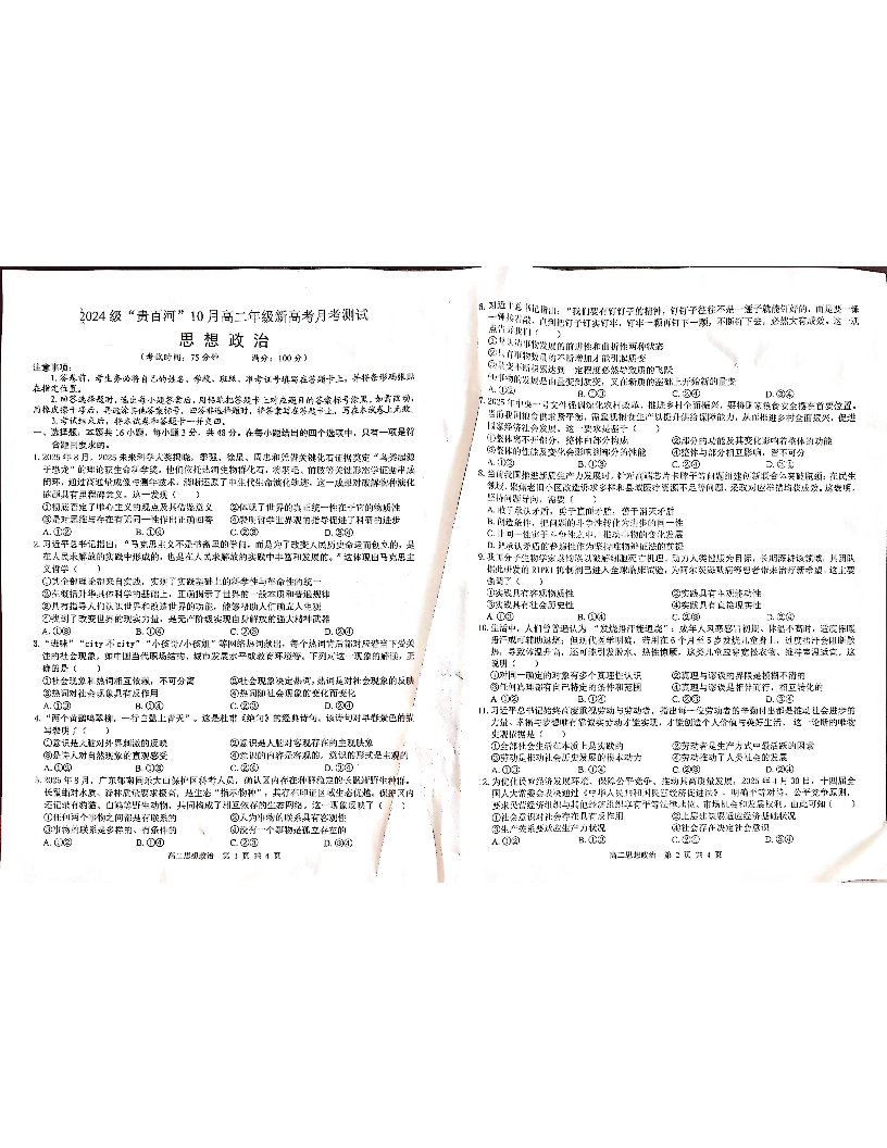 高二政治--广西贵百河2025-2026学年高二上学期10月考