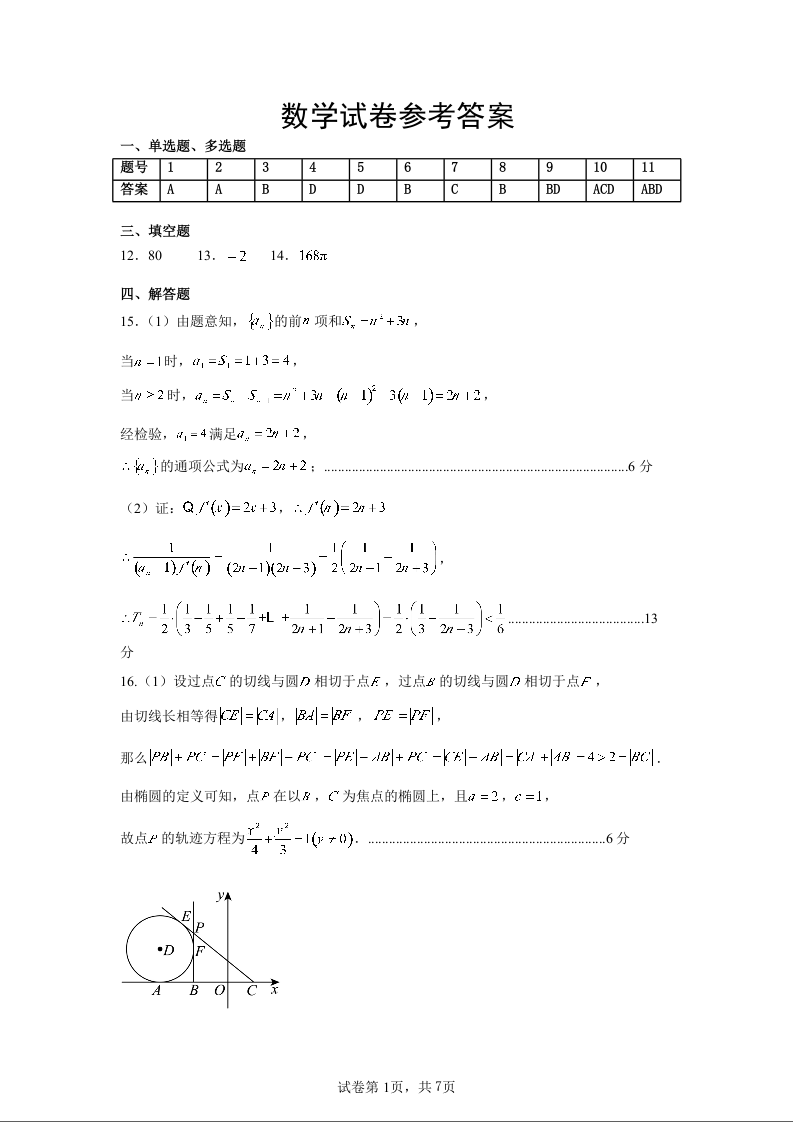 高三数学答案--湖北省腾云联盟2026届高三上学期10月联考