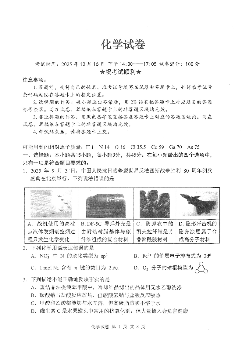 高三化学--湖北省腾云联盟2026届高三上学期10月联考