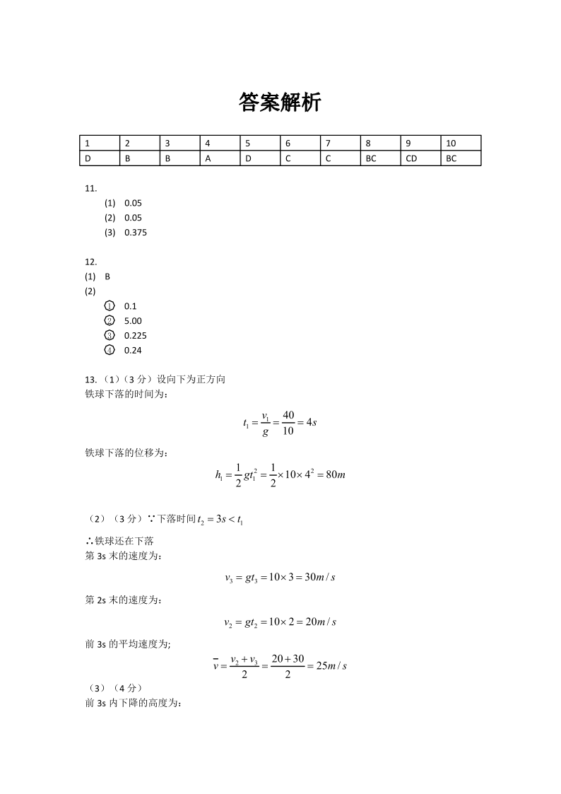高一物理答案--云南省玉溪第一中学2025-2026学年高一上学期第一次月考
