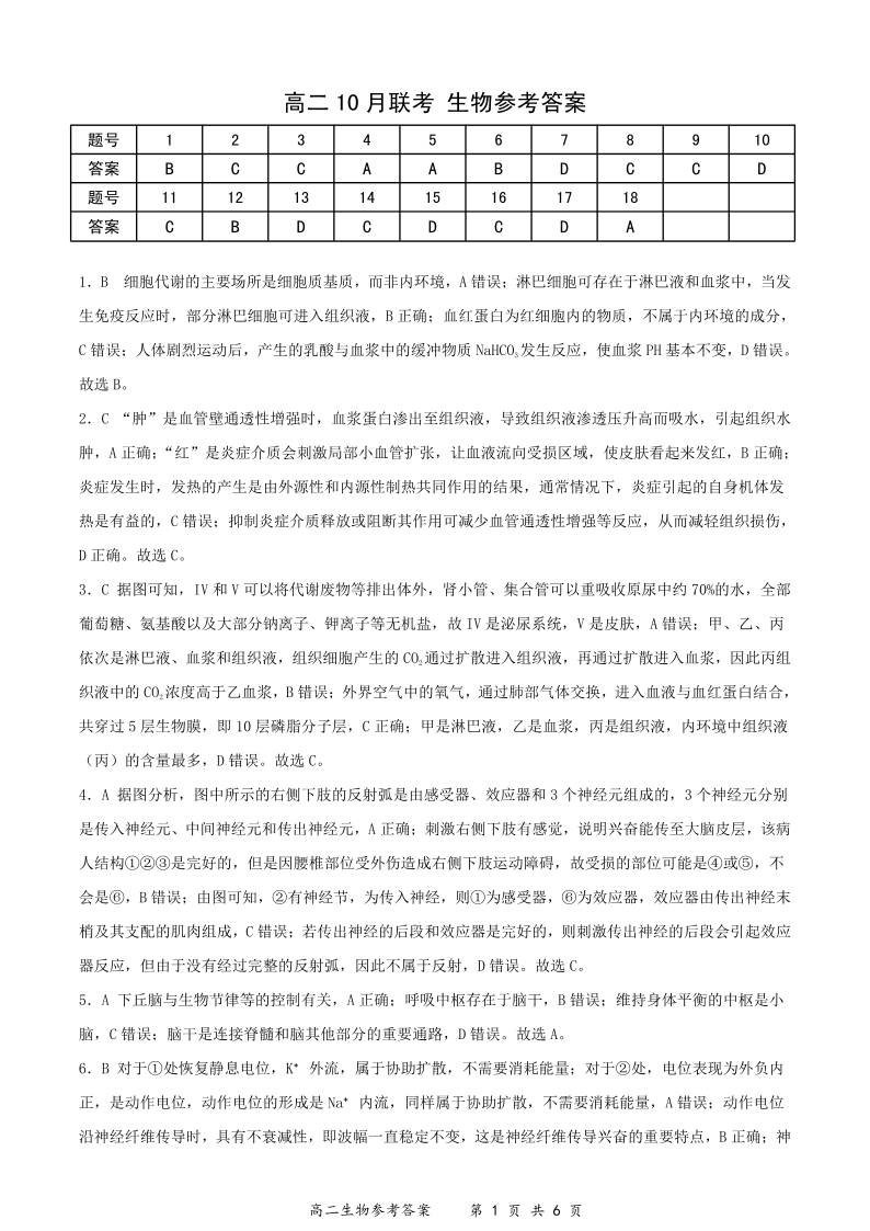 高二生物答案--湖北省楚天协作体2025-2026学年度上学期高二10月月考