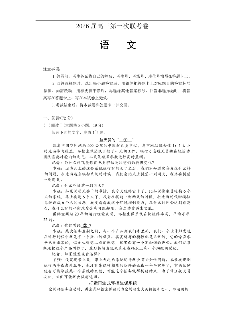 高三语文--湖南名校联考联合体2026届高三上学期10月月考