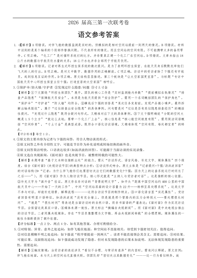 高三语文答案--湖南名校联考联合体2026届高三上学期10月月考
