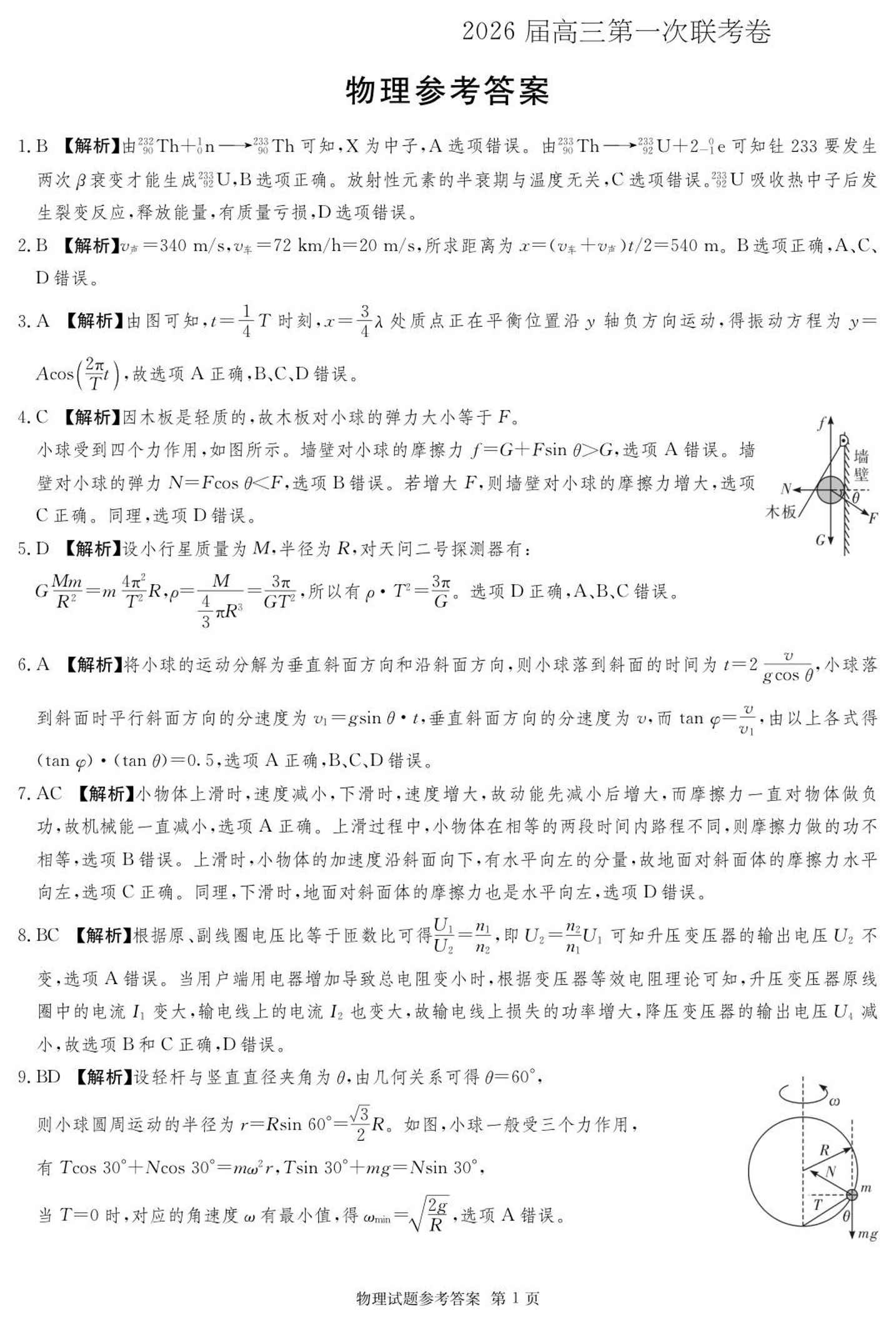 高三物理答案--湖南名校联考联合体2026届高三上学期10月月考