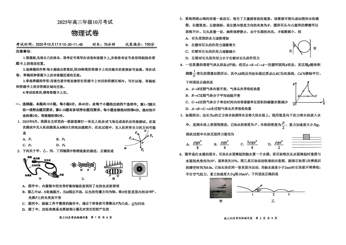 高三物理+答案--湖北云学联盟2026届高三上学期10月考试