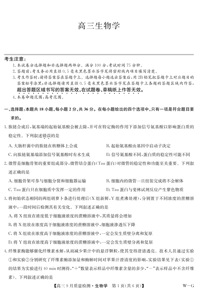 高三生物--湖北省九师联盟2026届高三9月质量检测巩固卷(10月联考)