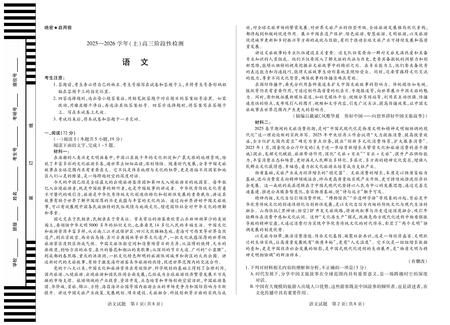 高三语文--河南省天一大联考 2026届高三10月阶段性检测
