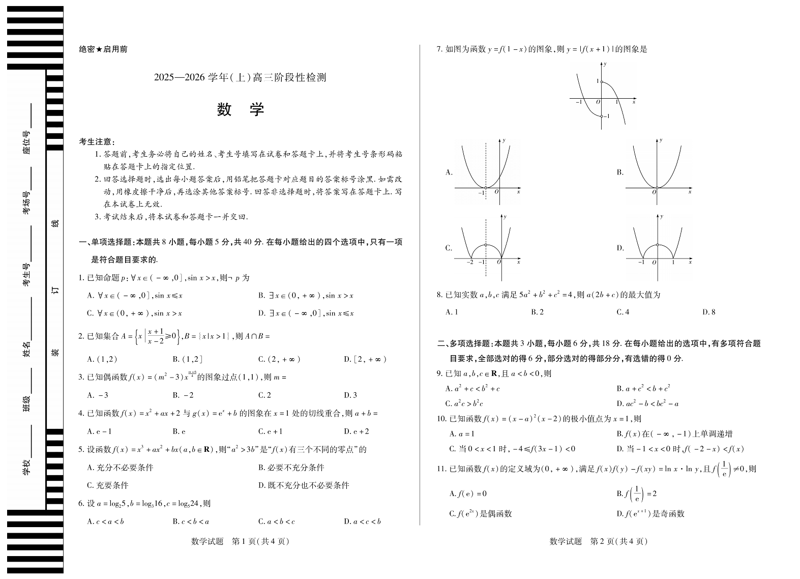 高三数学--河南省天一大联考 2026届高三10月阶段性检测