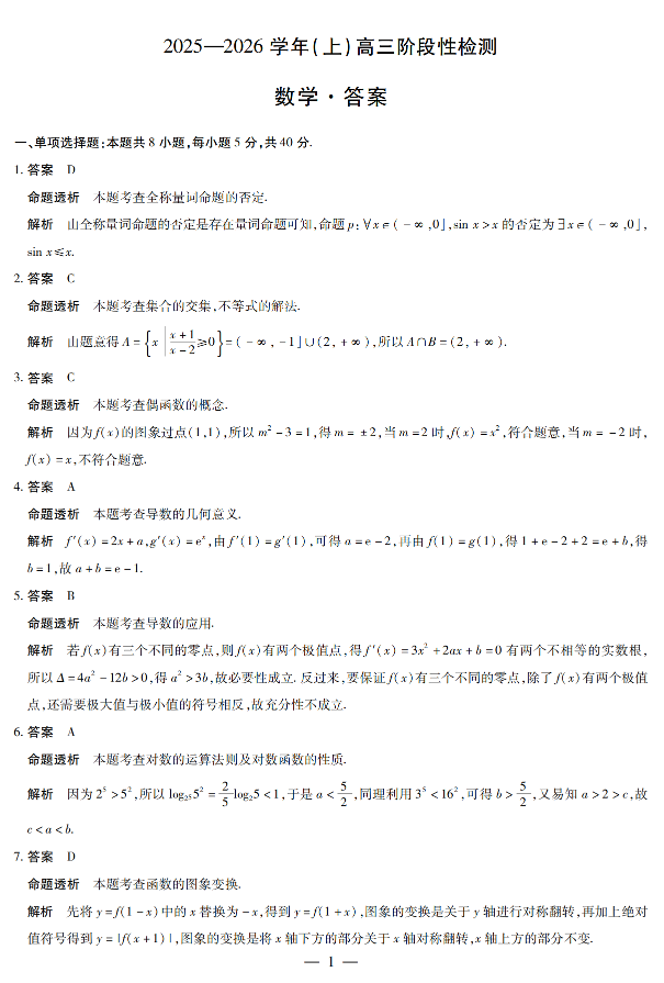 高三数学答案--河南省天一大联考 2026届高三10月阶段性检测