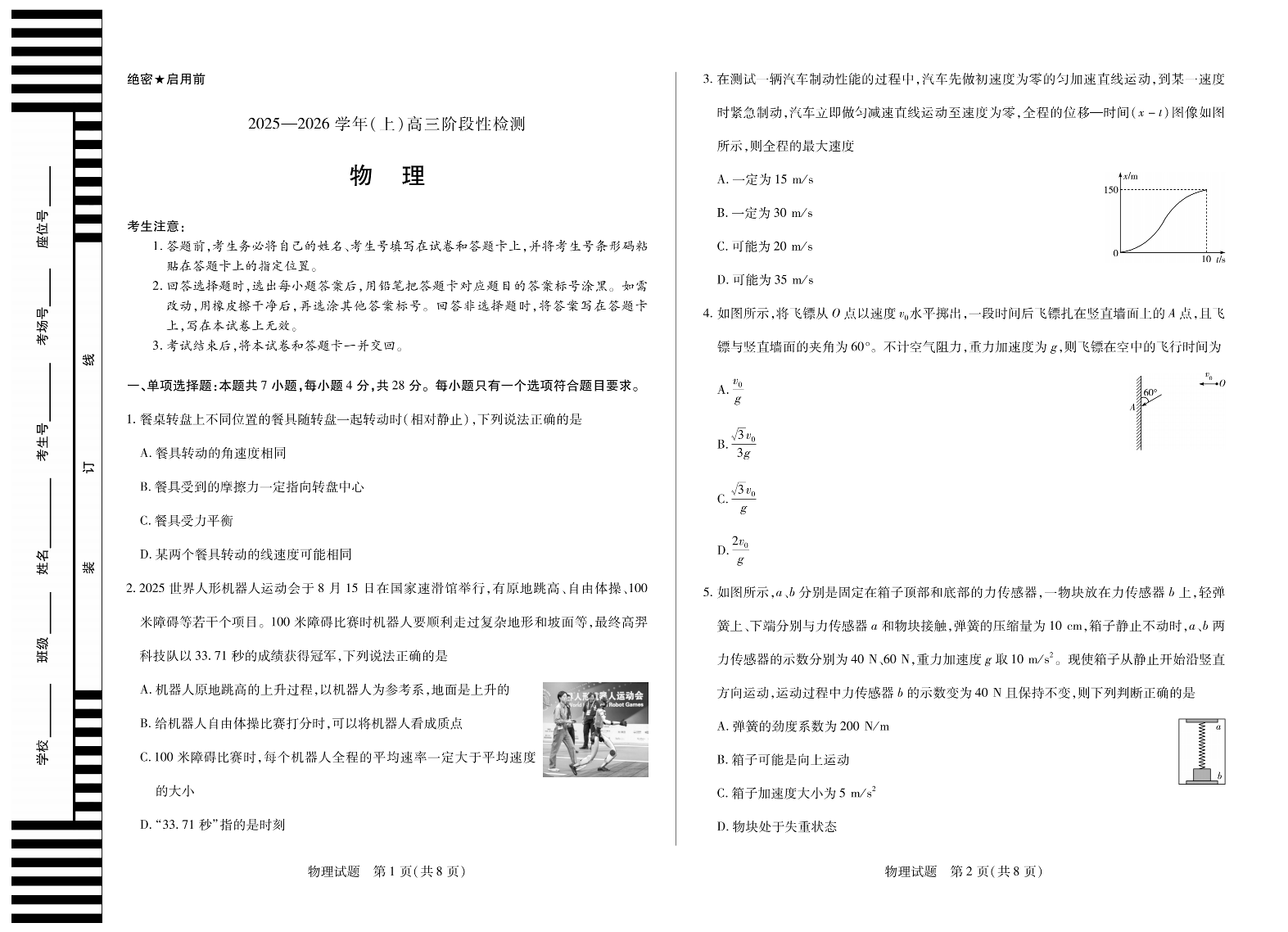 高三物理--河南省天一大联考 2026届高三10月阶段性检测