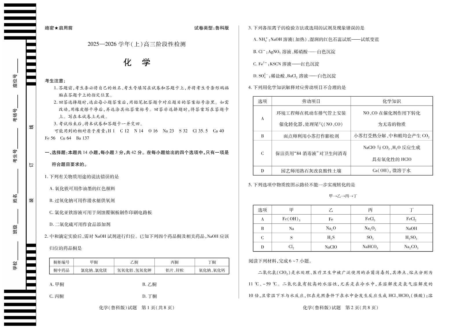 高三化学(鲁科版)--河南省天一大联考 2026届高三10月阶段性检测