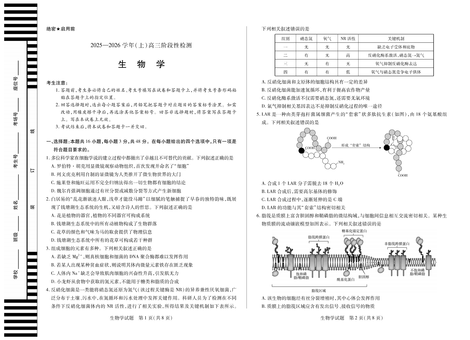 高三生物--河南省天一大联考 2026届高三10月阶段性检测