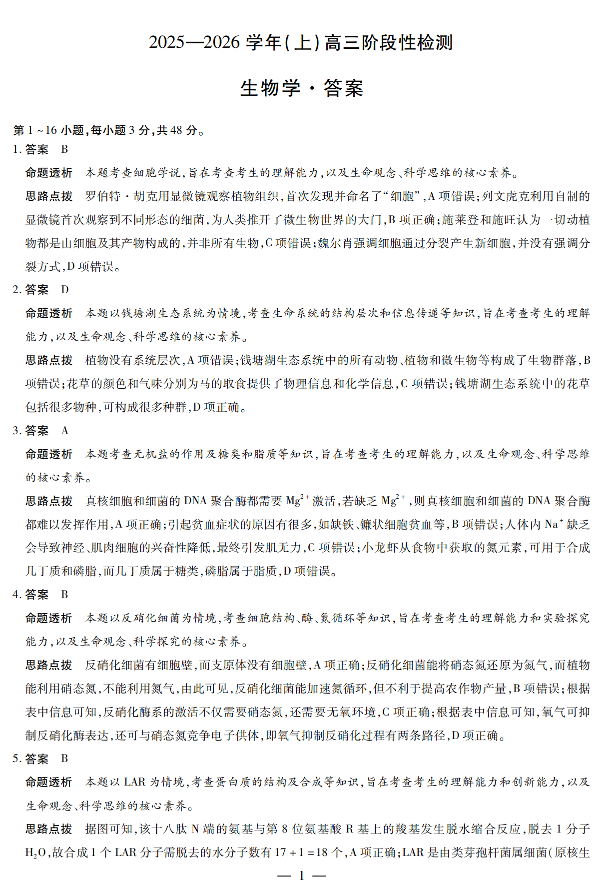 高三生物答案--河南省天一大联考 2026届高三10月阶段性检测
