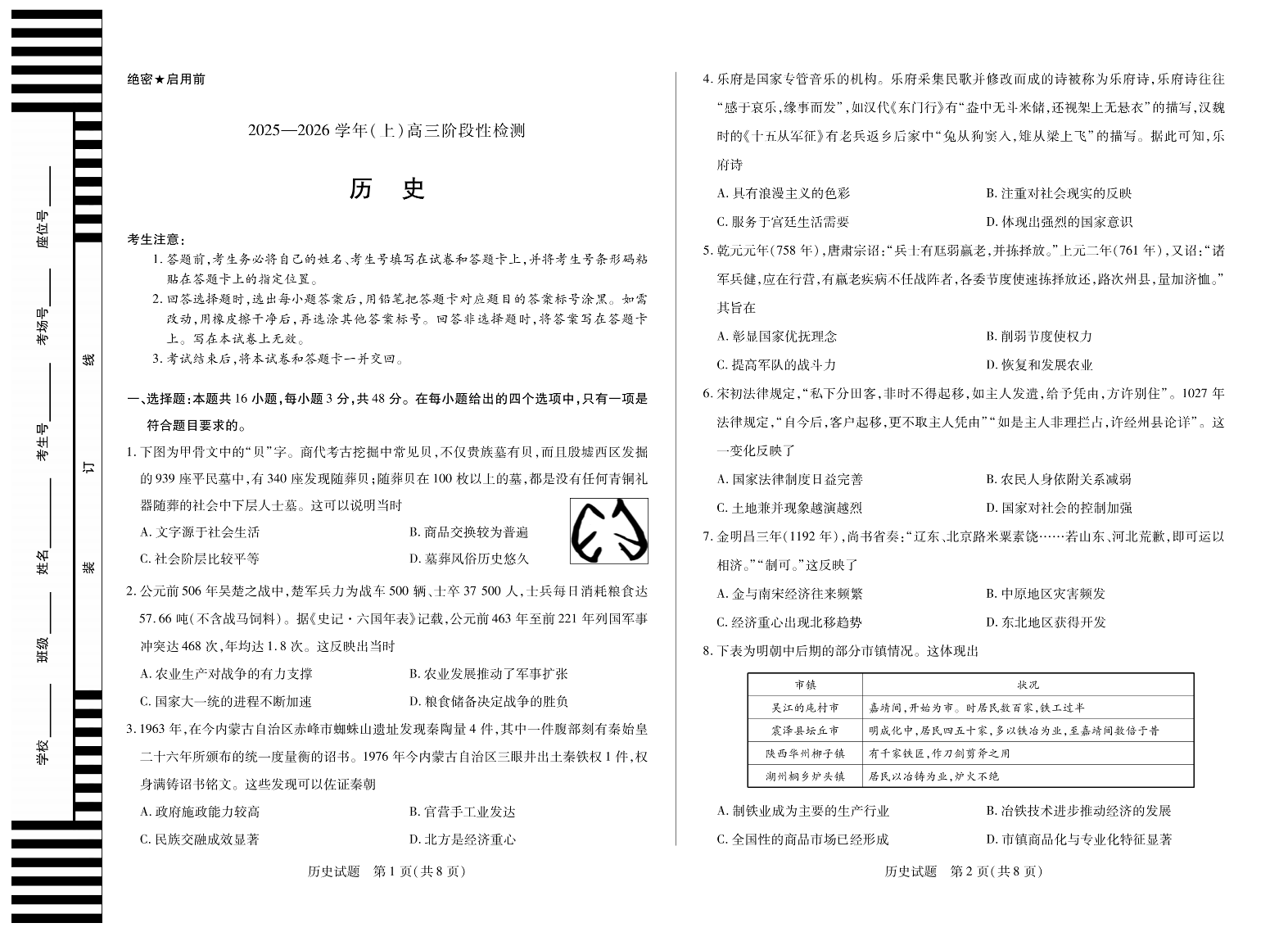 高三历史--河南省天一大联考 2026届高三10月阶段性检测