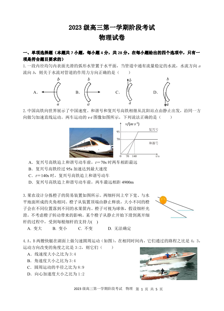 高三物理--广东省汕头市金山中学2026届高三上学期10月阶段考试