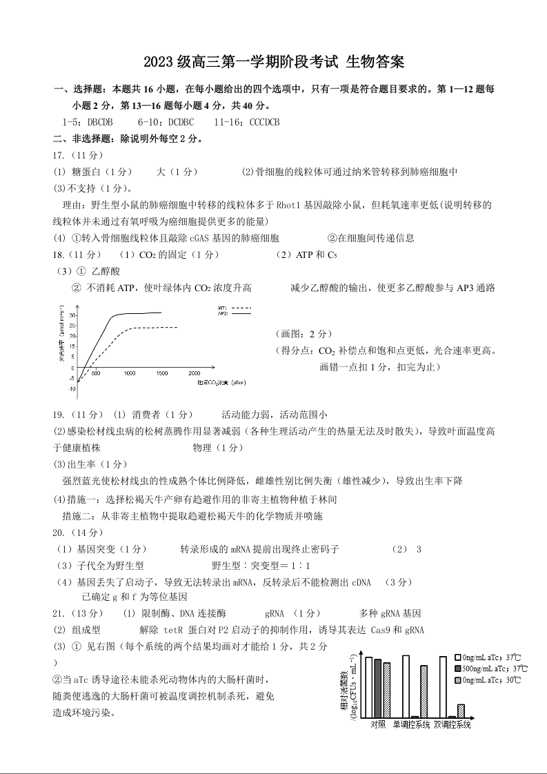 高三生物答案--广东省汕头市金山中学2026届高三上学期10月阶段考试