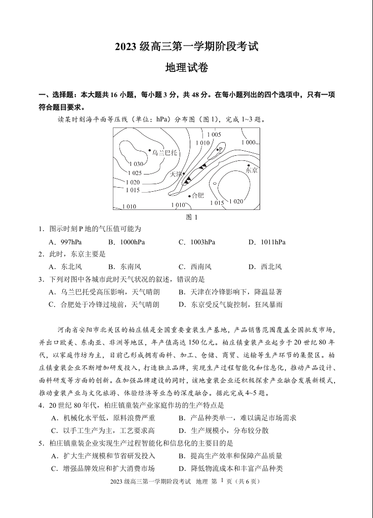 高三地理--广东省汕头市金山中学2026届高三上学期10月阶段考试