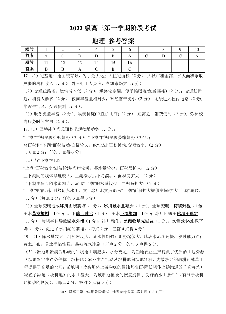 高三地理答案--广东省汕头市金山中学2026届高三上学期10月阶段考试