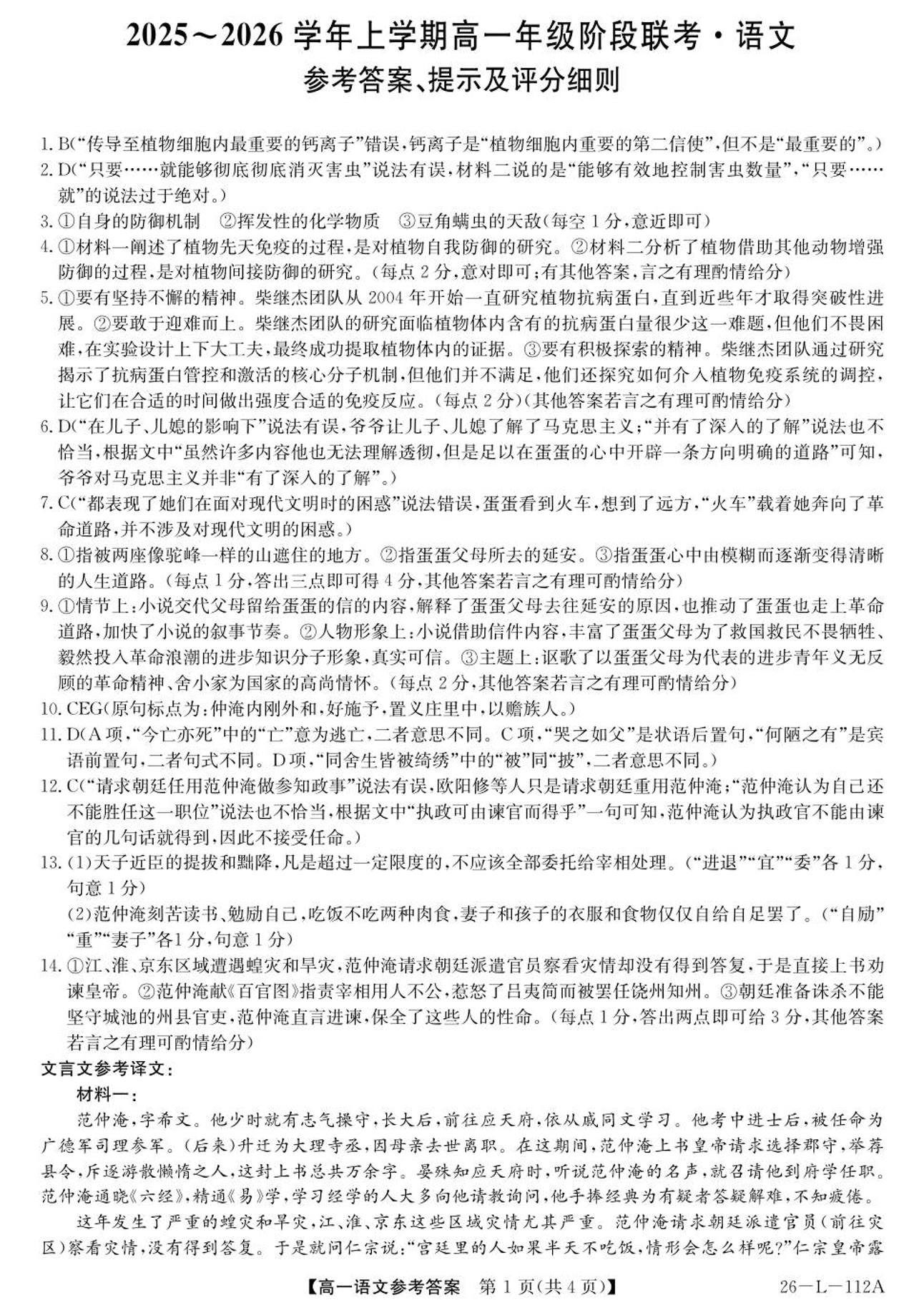 高一语文答案--安徽省江淮名校2025-2026学年高一上学期阶段联考
