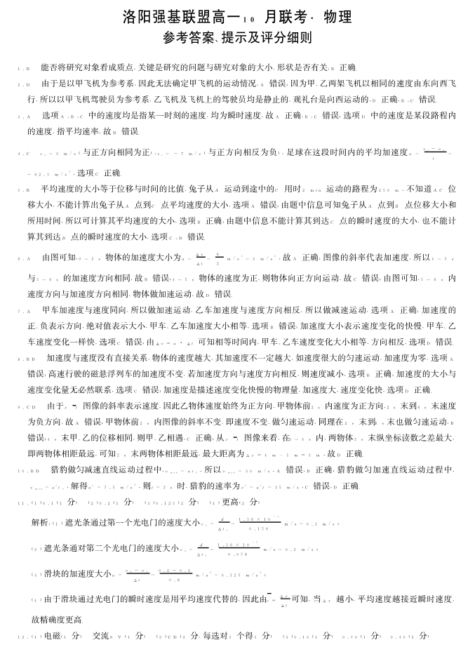 高一物理答案-河南省洛阳强基联盟2025-2026学年高一上学期10月联考