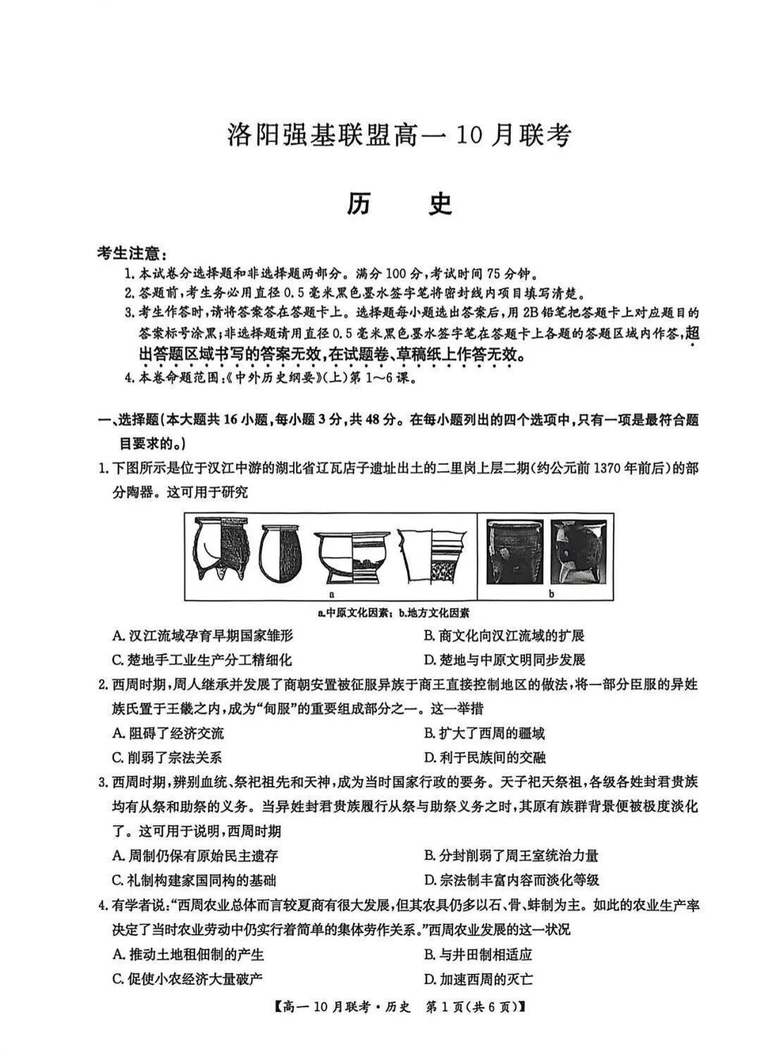 高一历史+答案-河南省洛阳强基联盟2025-2026学年高一上学期10月联考