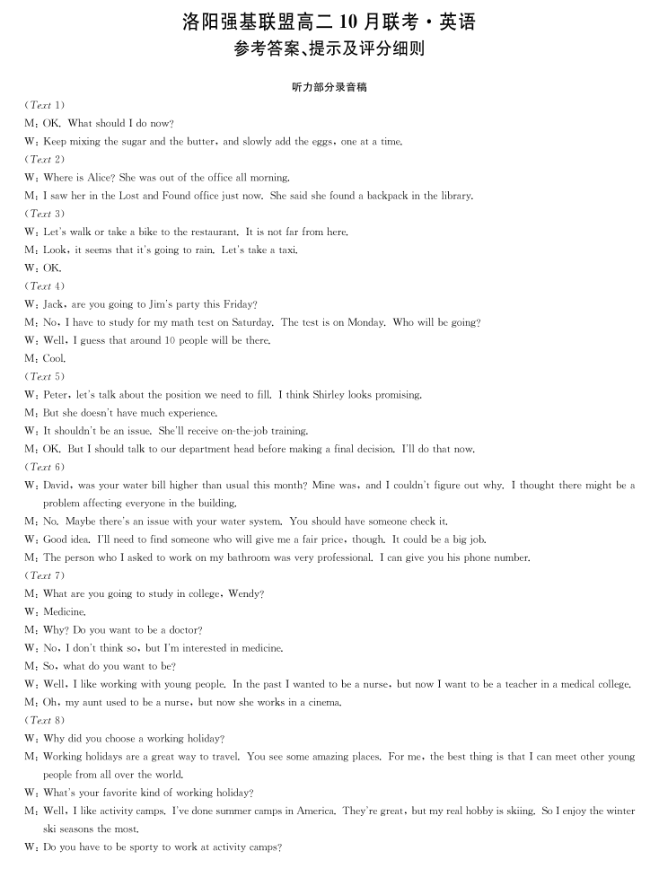 高二英语答案--河南洛阳强基联盟2025-2026学年高二上学期10月联考