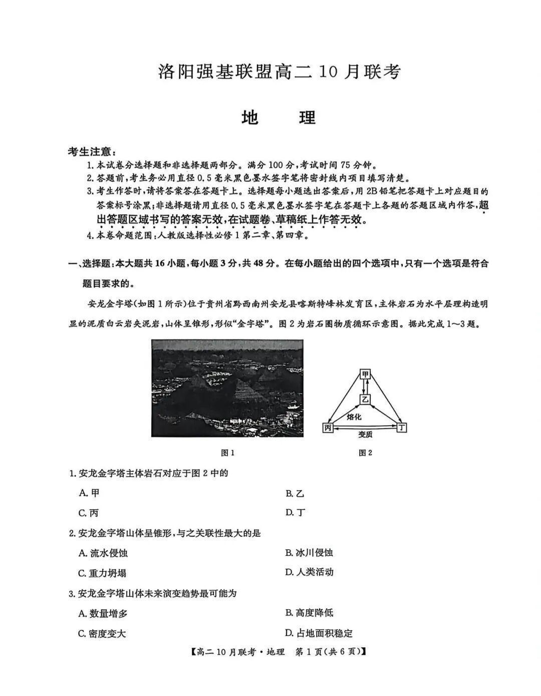 高二地理+答案--河南洛阳强基联盟2025-2026学年高二上学期10月联考