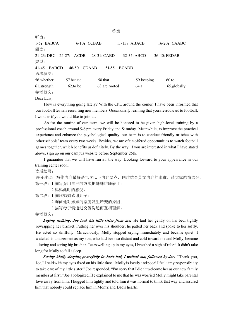 高二英语答案--四川省南充高级中学2025-2026学年高二上学期10月月考