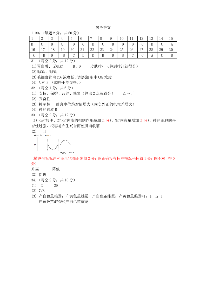 高二生物答案--四川省南充高级中学2025-2026学年高二上学期10月月考