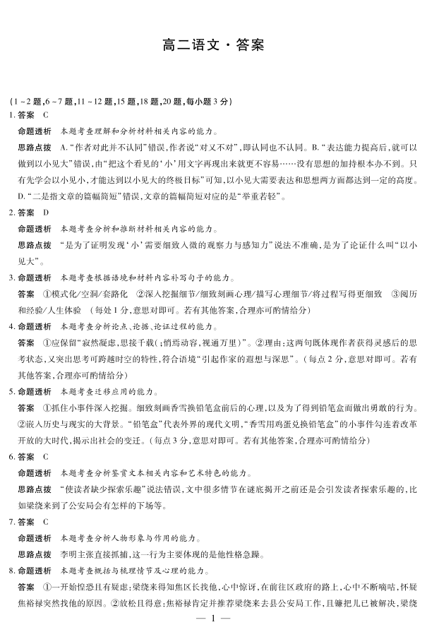 高二语文答案--湖南省天一大联考2025-2026学年高二上学期10月联考