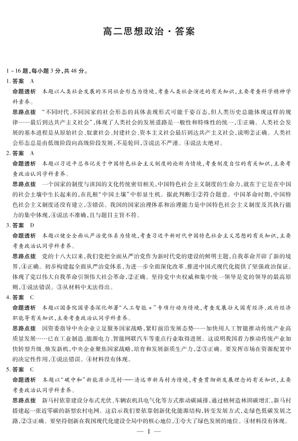 高二政治答案--湖南省天一大联考2025-2026学年高二上学期10月联考
