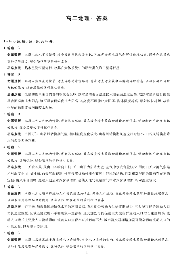 高二地理答案--湖南省天一大联考2025-2026学年高二上学期10月联考