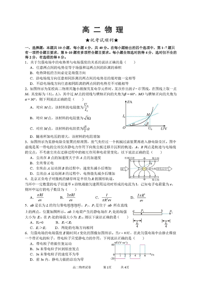 高二物理--湖北省武汉市部分重点中学2025-2026学年高二上学期10月月考