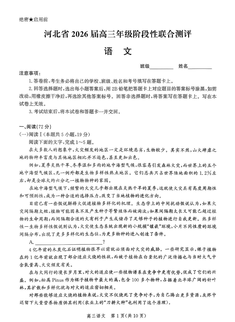 高三语文+答案--河北省示范高中联盟2026届高三上学期10月月考
