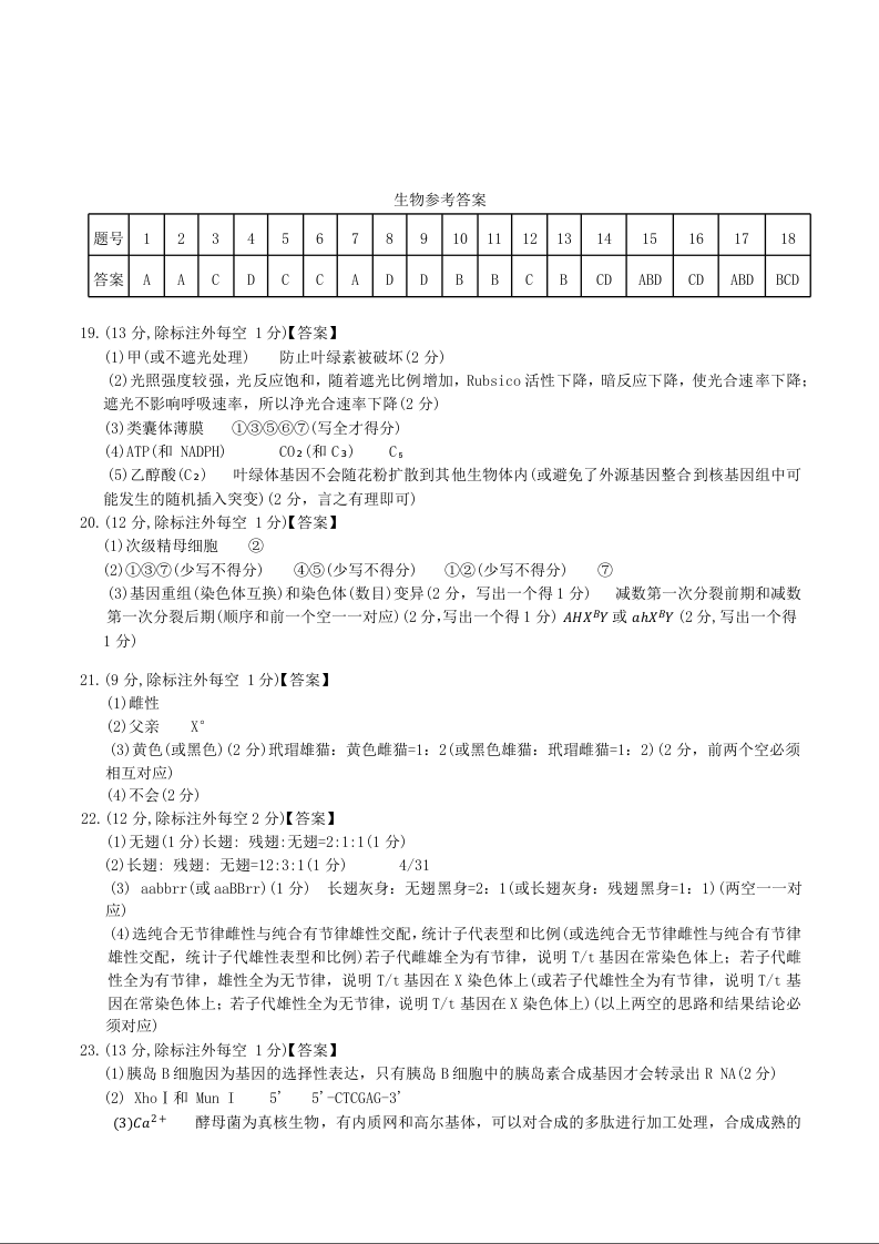 高三生物答案--河北省示范高中联盟2026届高三上学期10月月考